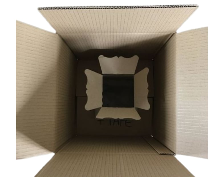 a sturdy cardboard box (ideally around 14"x14"x14"). Make sure it is not more than 60cm tall or the Post Office won't let you use the Special Delivery service.